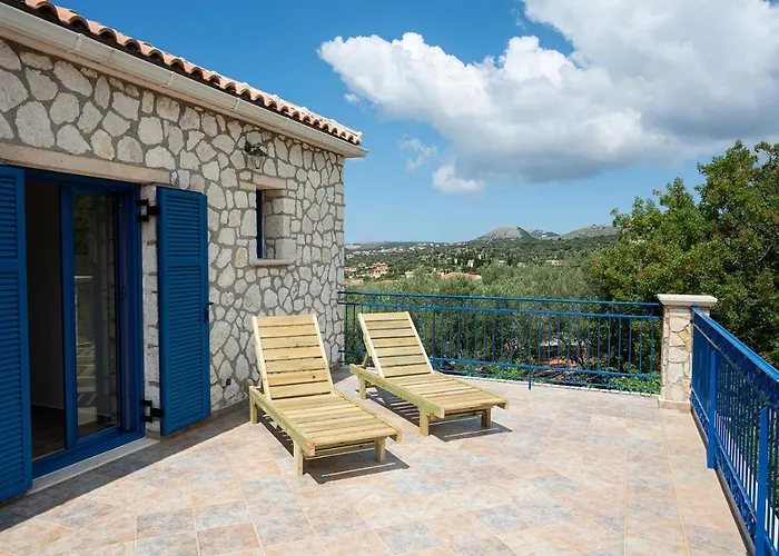 Η Stone House In Olive Grove - Former Denis Stone Villa Τραπεζάκι διαθέτει βεράντα με θέα στη θάλασσα και απέχει 15 λεπτά οδικώς από το αεροδρόμιο Αργοστόλι, Κεφαλονιά.
